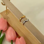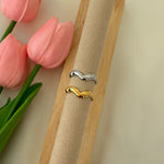 Aggiungi un tocco unico al tuo look con l'anello Ruvy! Il design ondulato rende questo gioiello davvero originale. Realizzato in acciaio inossidabile, è resistente e regolabile per adattarsi perfettamente al tuo dito.