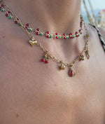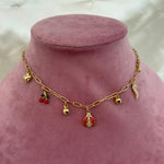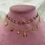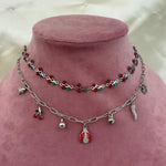 La collana Cherry multicharms è realizzata in acciaio inossidabile, perfetta da indossare al mare. Regolabile da 41cm a 46cm. Abbinala in set insieme al girocollo Cherry.