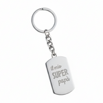 Portachiavi con placchetta ed incisione “Il mio super papà” in acciaio inossidabile.