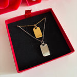 Set composto dalla box multirose con medaglietta mini e medaglietta medium realizzate in acciaio inossidabile. Colore delle collane, dimensione ed incisione a scelta. Il testo dell’incisione può essere scritto nelle note. Sacchetto regalo incluso.