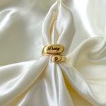 L’anello Round è realizzato in acciaio inossidabile ed è regolabile adattandosi perfettamente a qualsiasi dito. Può essere personalizzato sia sul lato superiore ad esempio con un’iniziale, un nome o una data e sul lato inferiore con un simbolo, un numero o un'iniziale. L’incisione può essere realizzata in corsivo o in stampatello. Il tempo di realizzazione può richiedere da 4 a 7 giorni.