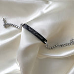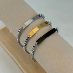 Bracciale da uomo con targhetta personalizzabile con incisione, disponibile in 3 varianti di colore. L'incisione può essere realizzata in corsivo o in stampatello. E' possibile scegliere il colore dell'incisione tra nero e bianco, ad eccezione del bracciale nero che può essere realizzato solo con incisione bianca. L'incisione può essere realizzata anche sul retro con un supplemento. Il tempo di realizzazione può richiedere da 4 a 7 giorni.