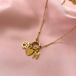 Inserire nella casella di testo la composizione scelta es. SOLE + CUORE SEMPLICE + LUNA per associare i ciondoli ad ogni collana.