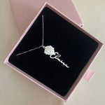 La collana Flower Rose è realizzata artigianalmente in Argento 925. Puoi personalizzare lo stelo con qualsiasi nome o parola speciale. E' perfetta per esprimere il tuo amore o per un regalo personalizzato.
