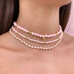 Collana girocollo rosa baby interamente realizzata a mano, disponibile in 3 diversi modelli.